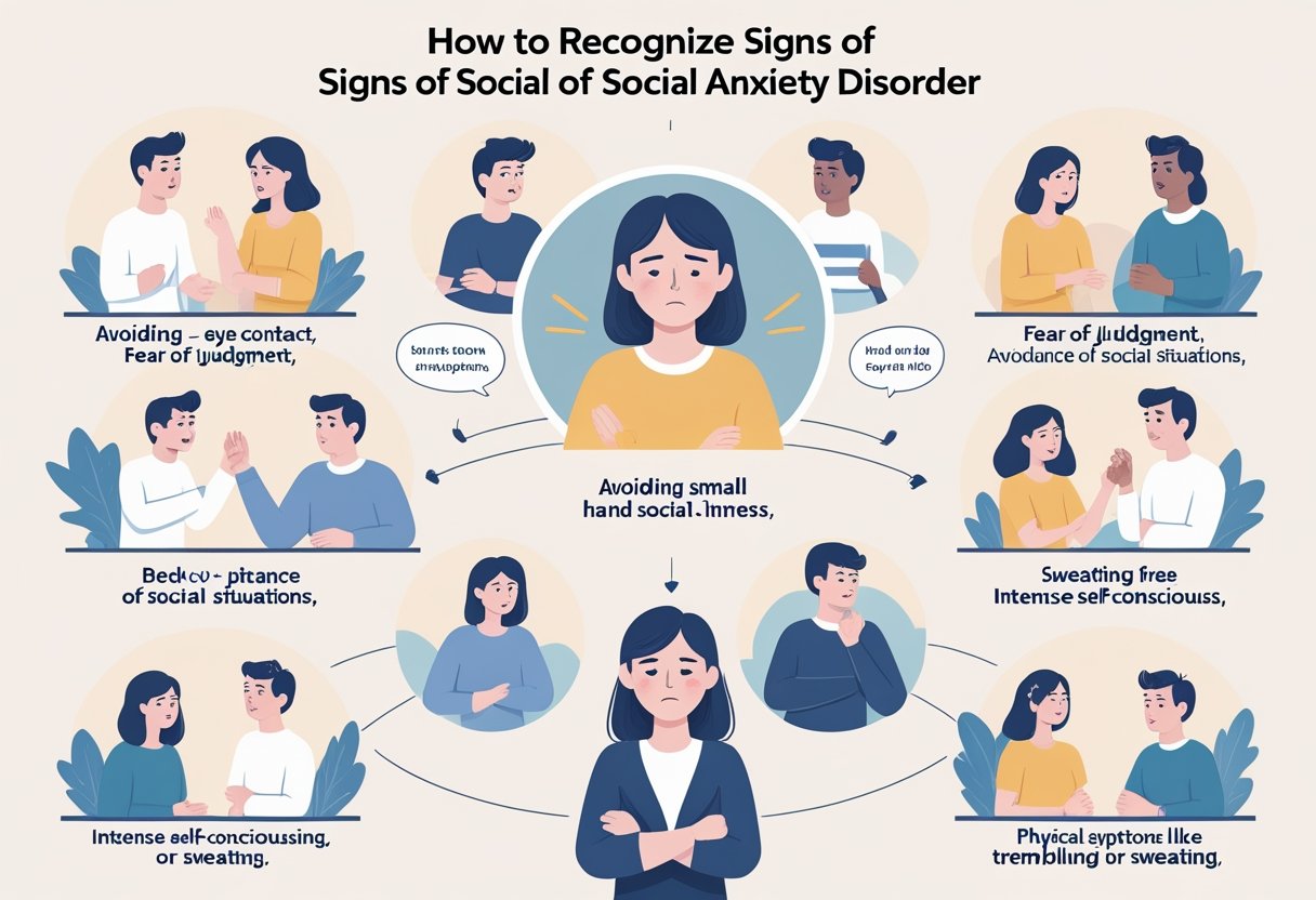 Physical signs of social anxiety often show up suddenly and strongly during social interactions.