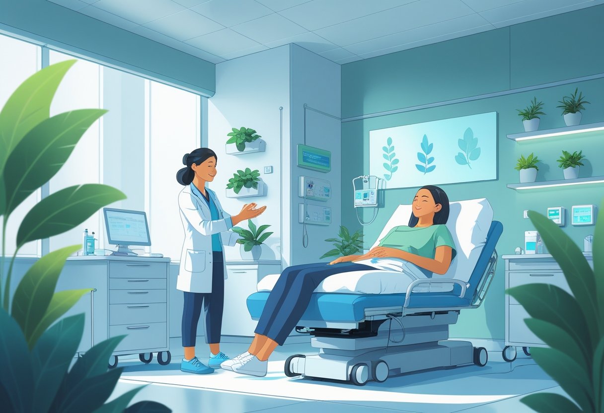 Tell the team what helps you calm down: music, a weighted blanket, dim lighting, or guided breathing. Be specific: “Please play low-volume classical music” or “I need a 5-minute breathing break before the IV.”